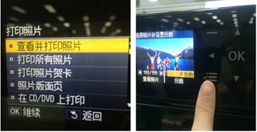 第二步:选择‘查看并打印照片’后点击‘ok’实体键,此时打印机会读取存储卡内的照片数据,按动左右按钮就可以选择要打印的照片,操作十分简单。
