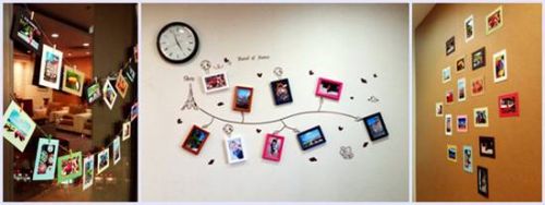 你也可以借助于麻绳和各种漂亮的夹子,将麻绳固定到墙上,随后将照片用夹子固定好。
