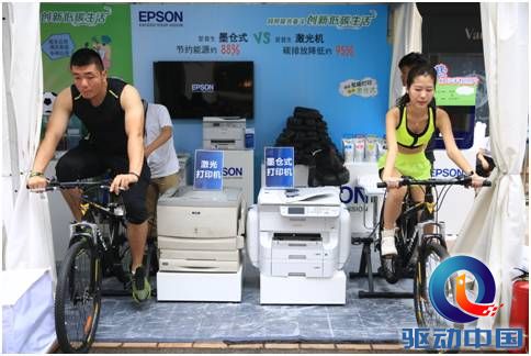 爱普生荣获2015“中国低碳榜样”称号,此图为颁奖典礼 互动环节体验乐享低碳生活 在现场,一场名为“悬赏骑行王”的趣味骑行发电打印比赛吸引了众人驻足参与、观看。比赛参与者的任务是和现场美女进行PK,如果能启动激光打印机进行发电打印,即可获万元大奖。当美女以每小时16公里的速度缓缓骑行时,片刻动能产生的电量即可带动爱普生墨仓式打印机打印出文件;而另一边的壮汉,以每小时30公里的速度全速前进时,还不足以启动激光打印机。爱普生墨仓式打印机的低能耗特性通过这个生动趣味的比赛展现得淋漓尽致。据工作人员介绍,一般情况下,墨仓式打印机的功率在15瓦左右,耗电量仅相当于同级别激光打印机的1/20。因此, 无论是企业还是家庭,拥有墨仓式打印机将让你的工作和生活更加绿色节能。
