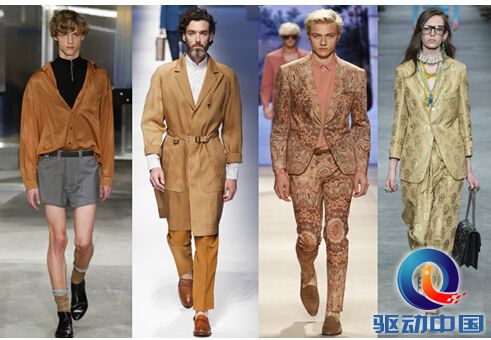 从FENDI、GUCCI到PRADA,流淌着米兰时尚血液的意大利品牌在这一季仍然难舍充满光泽感的金色。无论是满身闪耀着金属质感的毛绒T恤,还是在几何图案中撞色部分的金色呈现,设计师们恐怕都有一个“人人穿上皇帝新衣”的美梦。
