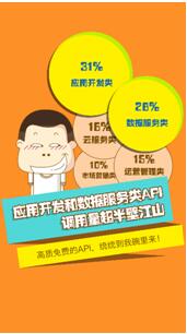 随着移动互联网时代的来临,近两年互联网又掀起了一波热浪,巨头们兼并合纵,创业公司百家争鸣,电商、O2O、互联网金融等更成为了全民热词。然而在一片热闹的情景中,真实情况是否真如表面所呈现出的那般兴旺繁荣? 由于各网站、APP的用户、活跃、利润等数据都是核心机密,外人无从得知,想要统计整个行业的数据做全盘分析更是不可能完成的任务。通过观测第三方应用市场的下载量、网站统计、指数等,仅能了解到各应用的人气,转化率、留存率等依旧是未知数。那么到底有没有全面深入了解互联网各领域真实情况的办法呢?有,方法就是依据API调用情况观察。 API是ApplicationProgrammingInterface的缩写,中文名称“应用程序编程接口”。API的调用量能真实的反应出用户使用相应功能的频次。比如网站显示天气预报,用户浏览一次网站,网站就产生一次天气API调用;用户扫描一张名片,APP就产生一次文字识别API调用。
