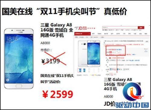 推荐商品:三星Galaxy A8000 雪域白16G 全网通4G手机 推荐价格:三星 Galaxy A8000尖叫价2599元 比京东低600元 推荐理由:“最超值中端机” 三星这款Galaxy A8000A800可谓中端市场的佼佼者。与苹果不同,三星为小主们奉献了一款性价比十足的超值机。主打轻奢风格,全金属机身的超薄设计,Super AMOLED屏幕、1600万像素F1.9大光圈摄像头等,用户体验全面升级,超棒性能,在低于3000元的智能手机中可谓是少见的孤品。