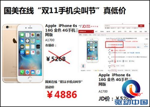推荐商品:Apple iPhone 6s 16G 金色 三网版 4G手机 心动价格:国美在线双11尖叫价4886元 比京东低402元 推荐理由:“热销潮货超强机” 家电之外, 3C数码也是国美在线的强项所在。特别是苹果系列产品,作为科技与经典的代名词,在中国高端市场拥有巨大的影响力,培养了一批忠实“果粉”。 今年9月上市的iPhone 6s尖货拥有迄今为止最强大的A9 系统芯片,并拥有市面上最好的视频录制手机,苹果的储存技术、相机的整体用户体验领先于整个市场,一机在手,可谓拥有整个世界的真逼格智能化设备,我有我牛!国美在线直供价4886元,比价京东省402元!小编也是醉了。