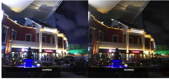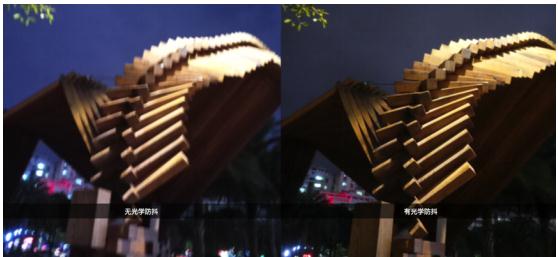 (左为没有光学防抖的手机拍摄,右为PRO 6s) 加入OIS光学防抖后,由于相机的快门时间变长,既能用低感光度收集到足够的进光量,防止出现噪点,而且防抖动,可以更加真实地还原夜景。