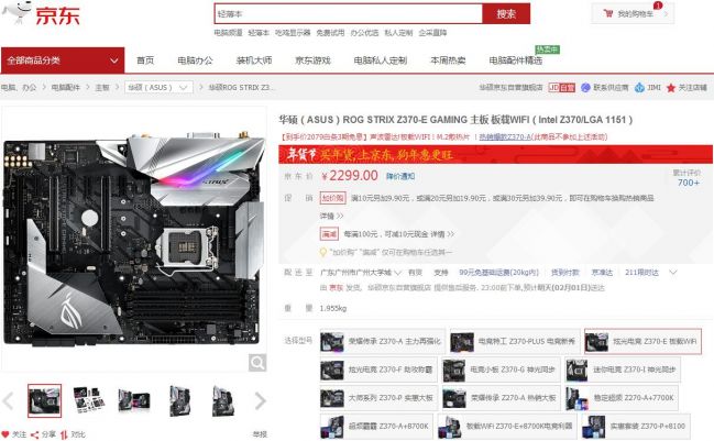 由于近期英特尔Coffee Lake处理器的普遍降价,性价比凸显,Z370平台的攒机热度也随之大增。在此,特为电竞玩家们推荐一款非常给力的华硕Z370主板——ROG STRIX Z370-E GAMING,它曾被国内知名IT媒体《超能网》授予推荐金奖,同时也是ROG星联盟成员、现《英雄联盟》世界第一中单、2017年年度最佳电竞选手Faker的首选电竞主板,集电竞网络、电竞音效、电竞提速、电竞守护、电竞快速互联、电竞氛围灯等诸多电竞绝活于一身,可显著提升玩家们的游戏体验。目前在京东商城年货节期间,这款主板正参加每满100减10元的促销活动,满减之后的售价仅2079元。 购买链接:https://item.jd.com/5233573 .html