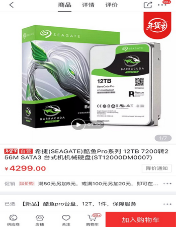 最大容量:希捷12TB机械硬盘 2017年闪存大幅涨价,沉重打击了SSD行业,同时也让大家重新感受到机械硬盘价格便宜量又足的优点。趁此良机,希捷科技公司将酷狼(IronWolf)、酷狼Pro(IronWolf Pro)和酷鱼Pro(BarraCuda Pro)硬盘的容量提升至了12TB,也由此成为了网络附加存储(NAS)和台式机硬盘市场提供最大容量、最佳可靠性和性能的顶尖产品。 12TB的超大容量不仅能够满足从创意编辑工作到游戏、桌面计算等众多领域对数据管理的所有需求,更意味着高运行速度,在大文件传输和图片编辑等数据密集型活动时速度更加惊人。此外,在京东平台,这款产品的好评度也是达到了逆天的100%,近期想购入硬盘作为年货犒劳自己的朋友不妨留意一下。