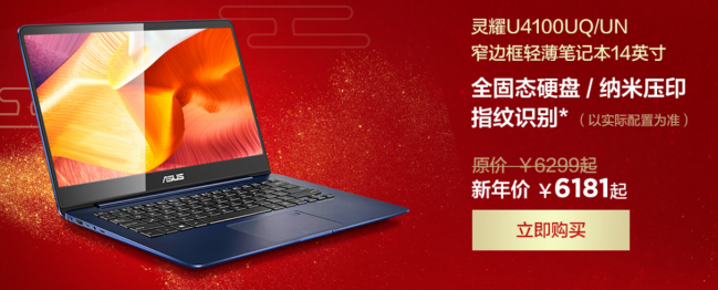 华硕商城年货节PC链接:http://store.asus.com.cn/article-huodongyeedm-465.html?utm_source=PR&utm_medium=PR&utm_campaign=18CNY0208&utm_content=pc 高效框不住 轻松新体验 华硕灵耀U4100UQ的机身轻仅约1.25kg,薄仅约15.9mm,轻薄外观加上A面纳米压印的处理,简约时尚且方便携带。选搭英特尔酷睿七代处理器,NVIDIA GeForce 940MX独立显示芯片以及全固态硬盘的配置,提供更快的开机体验及程序加载速度,带来高效流畅的使用体验。搭配14英寸全高清屏幕和6mm窄边框,呈现清晰宽阔的视野。轻薄疾速,灵耀U4100UQ带来高效轻松的办公体验。