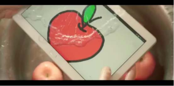 而妈妈这时叫孩子一起来洗苹果给家里人吃,懵懵懂懂的小男孩一时之间没反应过来,竟把平板上刚画好的“苹果”给了她,而妈妈在错愕之中却以微笑化解,真的将平板放入水下冲洗,在孩子的惊奇目光之下洗完之后将真正的苹果递给了他,孩子惊喜又开心,仿佛一场亲子间的小魔法!
