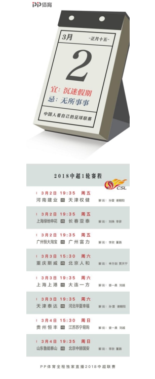 3月2日,2018赛季中超战火重燃,新赛季中国球迷在哪看自己的联赛也有了答案。近日,PP体育确认将继续新媒体独家全场次直播新赛季中超比赛,这也是PP体育连续第二年成为中超独家新媒体合作伙伴。球迷可以通过PP体育、PP视频、聚体育与龙珠直播等多个平台观看精彩赛事直播。 从上述播出平台不难看出,PP体育的中超直播涵盖了包括PC端、移动端以及大屏端在内的所有播放渠道,几乎可以满足球迷随时随地观看中超的需求。此外,依托苏宁体系的强大资源,苏宁分布在全国各地的上千块户外大屏,也将在赛季期间播出中超精彩集锦和原创视频节目,从而让中超赛事触达到中国最广泛的用户群,从而把免费的服务真正做宽。