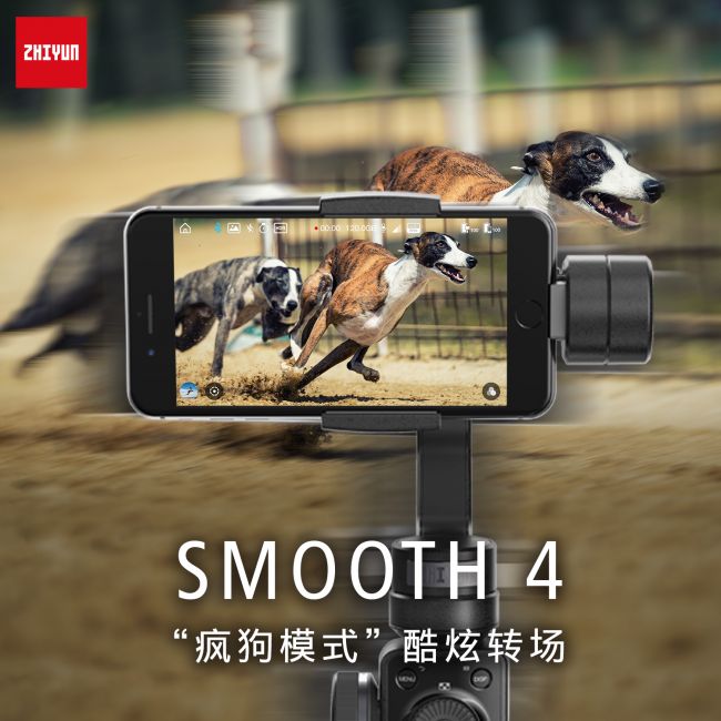 相比Smooth3,Smooth 4采用第7代蜂巢算法,在算法上也进行了升级,并新增了“疯狗模式”,切换“疯狗模式”后云台能根据手部动作快速捕捉被摄物体,省去中间多余的转场画面,让你拍摄的视频无须后期就能实现酷炫的转场效果,当场出片。