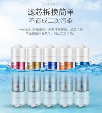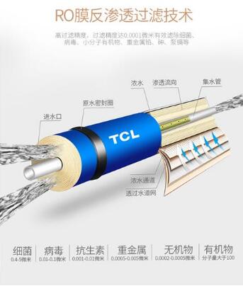 以TCL净水器TRO509-4为例,该产品采用美国陶氏RO膜,TCL净水器寿命长,TCL净水器抗堵塞,TCL净水器其RO膜反渗透过滤精度高达0.0001微米,TCL净水器四重滤芯层层过滤,TCL净水器强力去除细菌、病毒、小分子有机物、重金属等各种有害物质。 三、擦亮眼睛,别相信“永远不用更换滤芯”的净水器 滤芯作为净水器的核心部件,它的净化效果不但取决于滤芯的质量,同时更与滤芯是否及时更换有关。消费者在选择净水器时,切勿相信“终身不换滤芯”的产品,长期不换滤芯不但影响产品的净化效果,更容易导致二次污染,带来健康隐患。 在购买净水器时,选择人性化设计的产品,滤芯拆换简单,可以省心许多。以TCL2018年超滤净水器新品TJ-GU0501F为例,TCL净水器该产品在每个滤芯上都配备了机械式滤芯时间记录装置,TCL净水器不需插电,TCL净水器精准记录更换时间,而且滤芯更换操作简单,十分便捷。