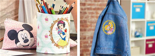 (选自NV180D部分内置绣花花样) 绣花面积采用了经典而实用的100×100mm,作为入门款绣花·缝纫一体机,该范围尤其推荐给家用绣花入门,在自己的衣服或包包上绣上迪士尼元素,变身迪士尼周边产品就是如此简单!
