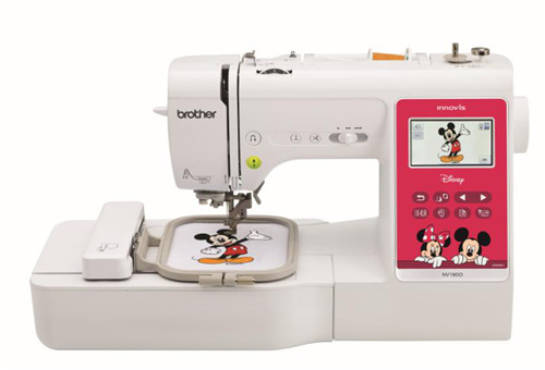 作为迪爸爸(迪士尼)的脑残粉,剁手也要买的周边产品——Brother电脑绣花·缝纫一体机NV180D终于绚亮登场!DIY正版迪士尼的缤纷多样产品,点亮心中的童话绮梦。 妙不可言的“中国红”,喜气洋洋的犹如为您量身定制般的色彩让人爱不释手,迪士尼的人气CP米奇与米妮跃然于红色面板之上,奇妙生动的组合带来全新的使用体验。全方位升级的3.7英寸彩色LCD触摸显示屏让用户在屏幕上就能直接查看彩色的迪士尼人物花样。全彩的魅力,使米奇和他的小伙伴们更加栩栩如生,同时也使绣花编辑变得更为便捷。 直接在触摸屏上通过手指拖曳就可改变花样的大小、位置的移动,如智能手机般操控自如。Brother让缝纫绣花变得更为智能、轻松!