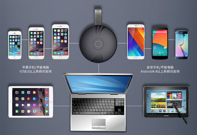 以视频内容运营商为核心渠道的智能无线投屏设备,正成为继盒 子后的又一座金矿。由芯片解决方案、视频内容商、硬件制造商构建的生态链日益成熟,逐渐在商业、娱乐、家庭等多种场景下扮演着重要角色。