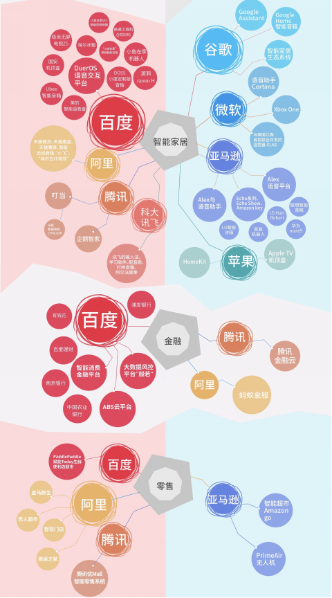而在中国AI产业落地中,科技公司们既是先锋也是主力。最早投入AI的百度,主要成果从智能操作系统DuerOS、到自动驾驶平台Apollo,布局智能语音交互和自动驾驶两个重要领域。目前,百度已占领家居场景、智能交通等AI商业化的主战场,推出了多款AI硬件,包括百度无人车、国内首款智能视频音箱“小度在家”、智能音箱灯、智能投影吸顶灯…… 百度自动驾驶技术平台项目Apollo自2017年4月份推出以来,已与福特、微软、英特尔、英伟达等80多家全球科技公司建立了合作关系,超过1700个合作伙伴使用着Apollo开源代码。去年11月,百度Apollo还被入选为首批国家人工智能开放创新平台。今年3月22日,百度获得北京首批自动驾驶测试牌照。对此,《麻省理工科技评论》称:“百度正与美国同行进行激烈竞争,致力于将自动驾驶技术应用于现实世界,目前中国政府全力推进自动驾驶开展。”