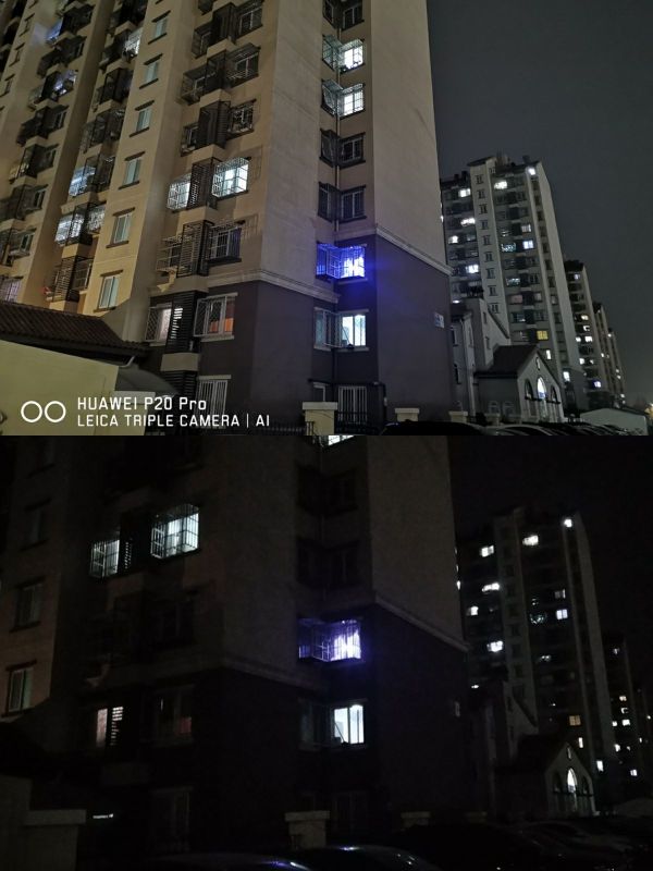 如上面这个对比的夜景图来看,在夜晚景物的清晰解析力、暗光处细节以及噪点控制上稳超普通卡片相机了。 如此来看,华为P20 Pro的“夜神之眼”是相当给力,那么它是怎么做到的?
