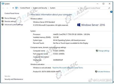从系统截图可以看出,这片主板采用了Z170芯片组,i7 7700 CPU;32GB DDR4 内存,运行Windows Server 2016系统