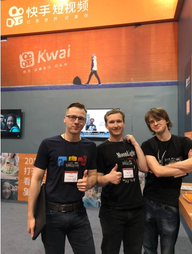 作为ACM-ICPC全球总决赛的本地金牌赞助商,快手科技现场展台上人气爆棚,世界各国参赛选手均对快手表现出了强烈兴趣。快手展区内轮流播放的UGC视频,吸引了大批选手驻足观看,特意准备的一千多份小礼品半天就被一抢而空。几名来自俄罗斯和哥伦比亚的年青程序员特意挤进快手展区,一边用生硬而热情的中文喊着“老铁666“一边比出特定的手势合影留念。