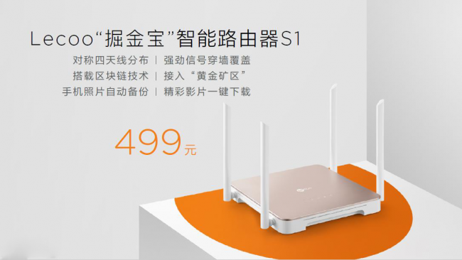Lecoo“掘金宝”智能路由器S1可谓是“文武全才”,它文能搭载区块链“挖矿”,武能让超强信号穿墙。