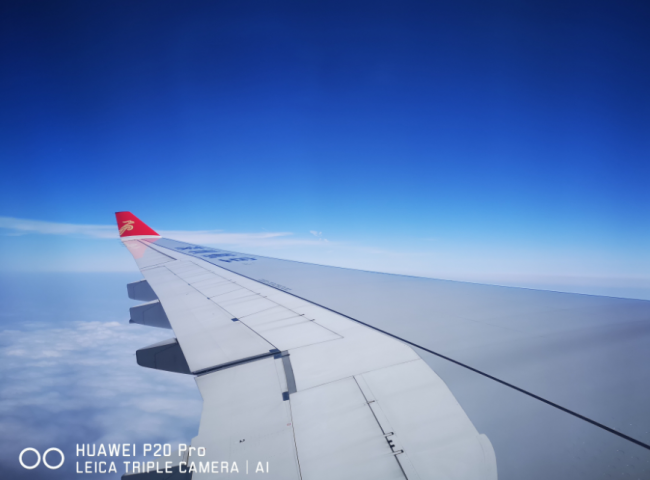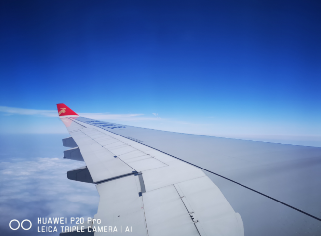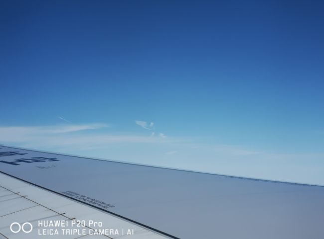 我们来看看白天拍摄的样张,在阳光明媚的时候,笔者在飞机上拍摄的样张,两者白天拍摄还是存在风格上的取向不同,苹果iPhone X拍摄的更加平淡,而华为P20 Pro则由于AI摄影大师的加入,能够实时定位拍照主体,分辨场景的逻辑关系,在复杂场景中分辨主体,根据主体属性进行区别优化。比如在拍摄蓝天时能够准确识别出蓝天和白云,然后匹配算法让蓝天更蓝、白云更白,消费者只需按下快门就能获得专业级的拍照效果。AI摄影大师能够智能识别19个种类,超过500种智能场景识别,让拍照更加简单、随意。