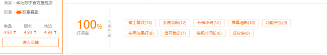 目前在京东华为官方旗舰店、苏宁易购上华为P20系列的好评率都高达100%,同时在华为商城也达到了99%好评率,天猫商城华为官方旗舰店也获得了4.9的高分。