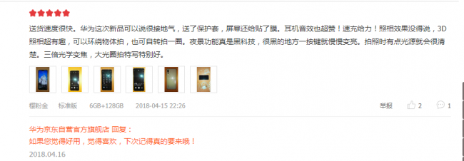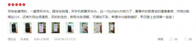 不仅老用户对华为P20青睐有佳,甚至曾经的iPhone、三星用户也趁换机开始使用华为P20系列,并且在评论中晒出了与iPhone X的使用对比:“为了超级夜景,为了红外不要插件果断买了。”“用起来手感不错,操作流程,拍照效果没的说,秒杀了我的iPhone X”。如今的华为已经具备苹果所没有的优势,也难怪当下“华为热“成为新潮流。