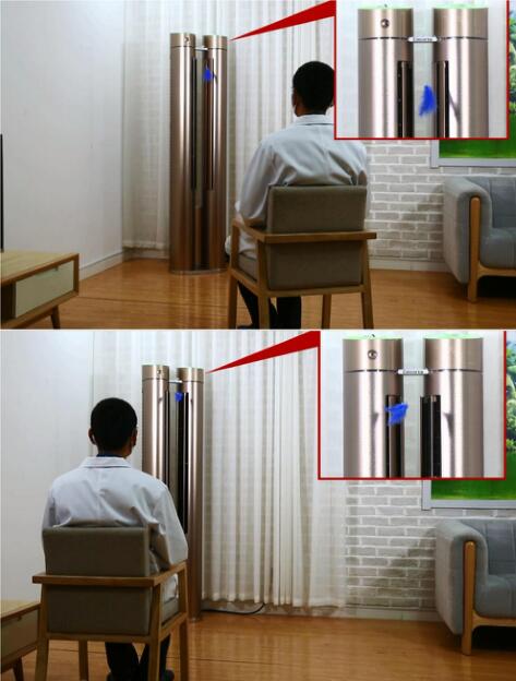 卡萨帝是唯一一个将行业传统送风模式彻底颠覆,变“单一送风”为“定制送风”的高端品牌。从这个思路出发,卡萨帝原创分区送风科技,打造了独一无二的智慧人体温冷感知系统与双循环送风系统,前者能够智能检测人体散热量、位置分布和环境温度等参数,形成红外热图像,从而感知每个人的冷热;后者可以将送风区域分为左右、上下各5个送风区域,并用大数据共计算出2048种送风模式,实现定制送风,满足不同人体的个性化冷热需求,实现“哪里需要吹哪里”。正如此次实验所演示,尽管实验人员不停地变换位置,天玺空调Grid-Eye依然能够随时对室内环境及人体进行检测后出风,出风口处悬挂的羽毛也随之改变方向:人在左,羽毛向左“拐”;人在右,羽毛向右“拐”。当实验人员静坐片刻,体感舒适度逐渐提升,羽毛飘动的幅度和频率也慢了下来,表明空调出风强度降低,能够及时匹配用户的体感变化。