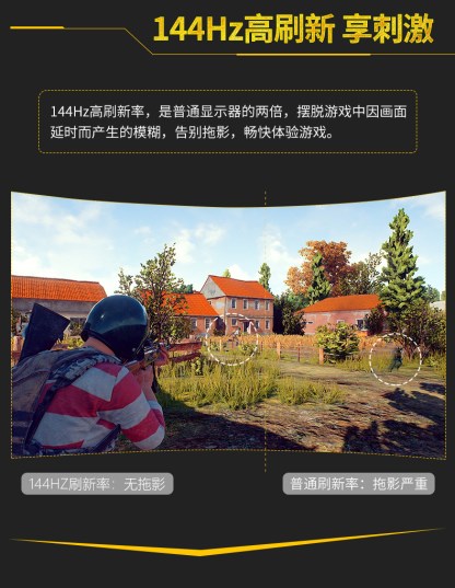 144Hz高速刷新率,杜绝残影、拖影、失帧,画面流畅无比