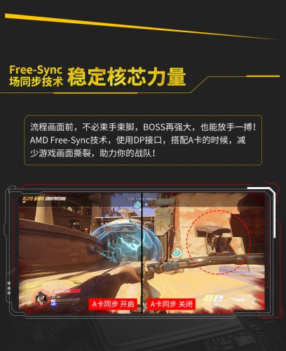Free-Sync技术,同步刷新率与显卡输出频率,解决图像撕裂、卡顿及延迟现象