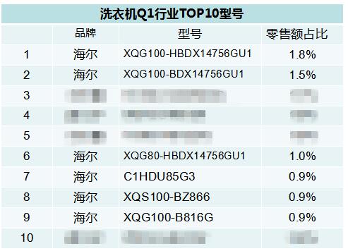 产品占比最多:全国洗衣机TOP10榜单海尔占6席