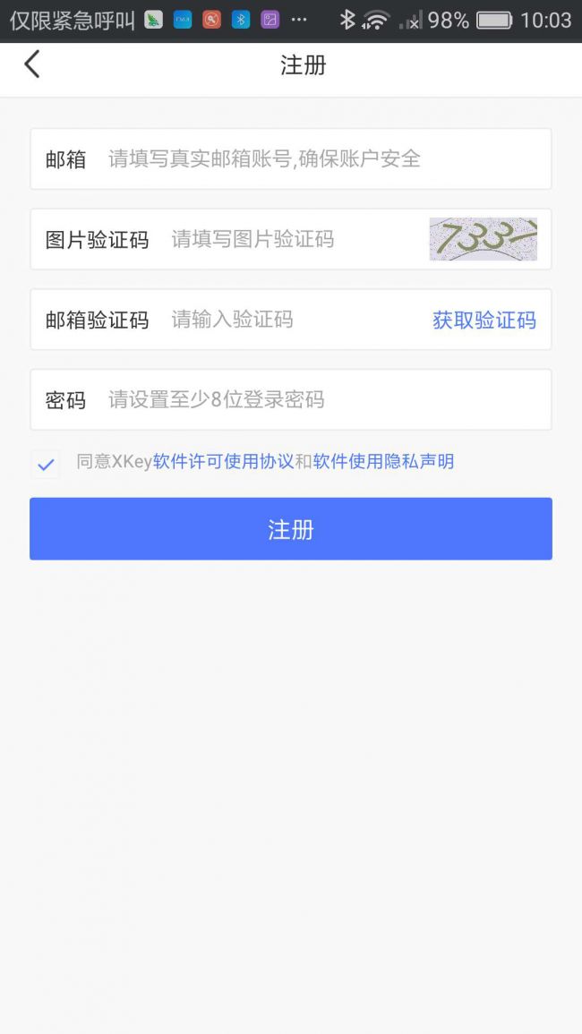 安装完成之后,打开XKey首先进行注册,只需要一个电子邮箱地址就可完成注册。无需填写姓名、电话以及相关证件等信息。