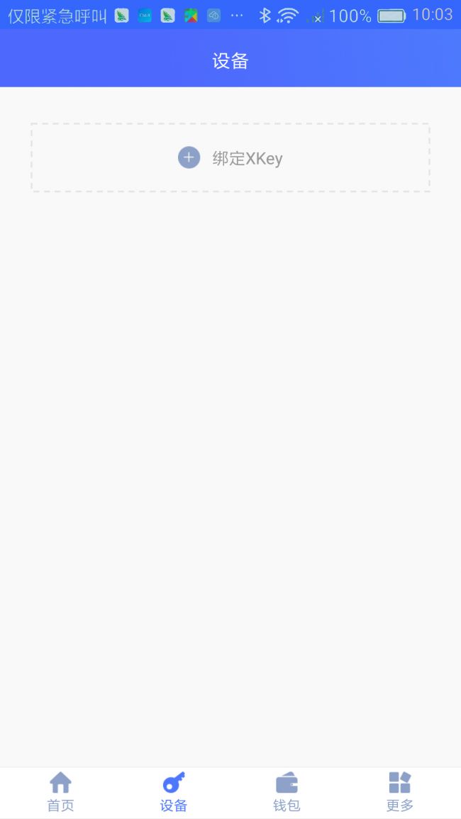 注册完成后,点击下方菜单栏“设备”选项,进行设备绑定。绑定的时候需要将XKey设备通过USB链接线接入手机,即可自动将注册的账户跟XKey设备进行绑定。