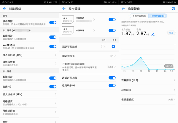 作为移动的“铁杆用户”,在上网上其实少花钱,毕竟有万恶的5元30M。但移动也有自己的好处,比如广泛的信号覆盖,比如率先推出Volte,音质简直让人欲罢不能。华为P20的“双4G双待”,可以用两张4G卡,现在用移动号接电话的同时,又用上了超便宜的联通4G套餐,双卡都启用4G,通话时可上网,这些可不是吹牛。