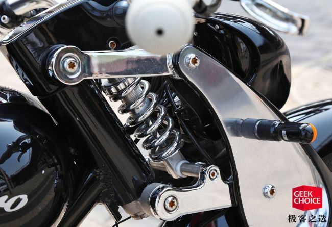 当然,在骑行舒适度方面,Munro 2.0 也是下了一番功夫的。和我们常见的摩托车或者电动车有所不同的地方是,车身前避震部分,它采用了四连杆中置避震的设计,加之全地形轮胎本身便具有相对较强的通过性,从我们的实际骑行体验来看,其可以很好缓冲驾骑过程中来自复杂路段的冲击。