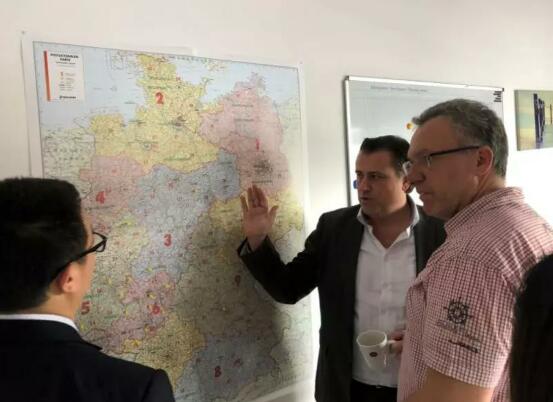 (店主Schmid正在介绍其在整个德国的服务网点分布)