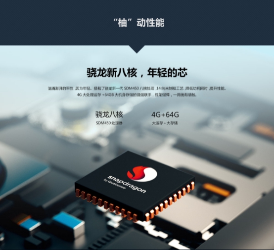 这次moto青柚1s继续延续了鲜活实力派的特质,无论是性能还是体验都做到了足够出色。硬件方面配备了14nm工艺制程的高通骁龙450八核处理器,拥有性能强劲功耗出色的优势,并且还标配了4G RAM + 64G ROM大容量存储组合,畅快淋漓的操作体验全面满足了每一位鲜活时尚人士的用机需求。续航方面搭载了3000mAh超高密度电池,并且支持15W涡轮快充技术以及智能变频省电技术,为用户提供了三重续航保证。