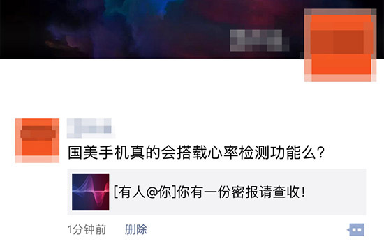 那这次“国美Fenmmy Note热身赛”H5又给了我们什么信息呢?声音?解密?国美Fenmmy Note身上到底藏着什么样的秘密呢?难道,继国美U7的虹膜识别、人脸识别和指纹识别三重生物识别后,在生物识别领域领先一筹的国美手机会给Fenmmy Note加入心率监测功能么?如果预言成真,国美Fenmmy Note将会成为为数不多的支持心率监测的智能手机。