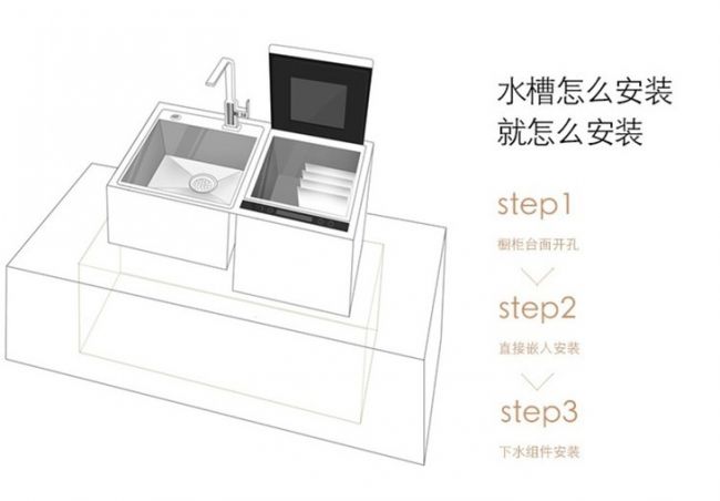 而橱柜开孔、水电改造这些工程分属不同的专业,以往都是由不同的施工方负责,不但费时费力,还很可能影响到用户的正常生活,这其中的繁杂性常常使消费者最终放弃了购买的想法。“安装难”已经成为阻碍洗碗机走进千家万户的一大障碍。