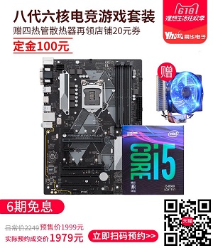 华硕PRIME B360-PLUS主板搭配Core i5-8500的板U游戏套包预付定金,领取店铺20元券后即可享受1979元的预购专属价,支持六期免息,并赠一套价值89元的CPU散热器。