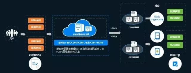 一是支持端到端的H.265编解码传输,与H.264进行对比,同等画面质量时,码率可降低35%以上。在相同码率下,经过H.265编码的视频在画面细节表现方面,清晰度会有较大提升,在细节部分表现更加细腻,更逼真。二是支持云端H.264/H.265双流转码,经转码输出不同编码格式、不同码率的视频文件,供不同终端使用,最大化降低带宽成本。