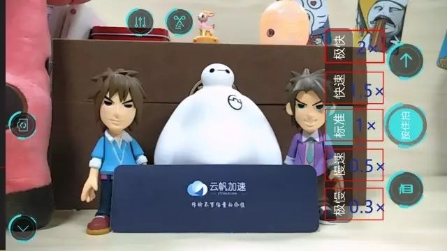 云帆加速短视频方案支持变速录制,在拍摄过程可实时设置短视频生成后的播放速度,是正常速度的0.3×,0.5×,1×,1.5×,2×倍,也可根据企业需要进行参数调整,快慢有序让视频更有节奏感。