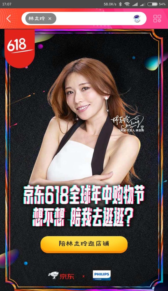 爱豆陪你逛京东!除了超划算的价格,还有飞利浦电视首席体验官林志玲陪你逛京东!打开京东app,搜索“林志玲”,爱豆给你送惊喜,带你逛店带你飞!