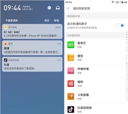 除此之外,Flyme 7还支持用户自行对通知消息进行管理,根治流氓应用的顽固打扰。