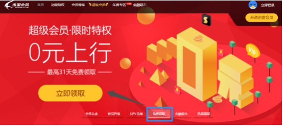 1)登录迅雷会员官网(vip.xunlei.com),点【免费领取】进入活动页参与。