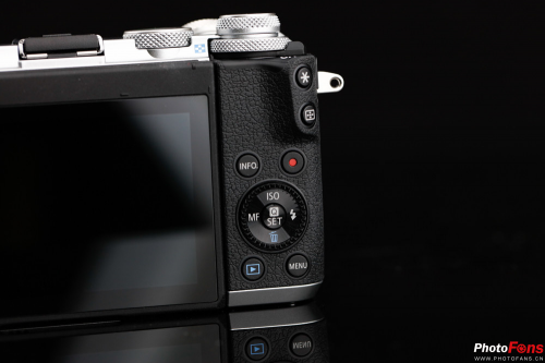虽然很多人把佳能微单M6看作是佳能旗舰级微单EOS M5的简化版,不过除了性能基本一致外,M6同样也非常强调相机的操控性,机身顶部的右侧集中了4个转盘,分别为模式转盘、主转盘以及快速控制转盘和曝光补偿转盘。
