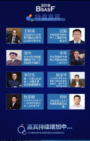 记者日前从“2018BSASF区块链场景化应用高峰论坛”举办方之一的精一天使公社获悉,中国计算机学会区块链专委会主任斯雪明,工信部区块链生态联盟副理事长、赛迪区块链研究院院长刘权,中国信息安全认证中心体系与服务认证部主任张剑等三位国内官方顶尖专家大咖将与北大金融科技研究中心主任、智链科技CEO董宁,精一天使公社创始人、中国天使投资联盟理事长李汉生、老鹰基金创始人、长远控股有限公司董事局主席刘小鹰等数十名行业领袖、国际级专家、创业达人一起,就区块链深层共识的思想基础,区块链对未来商业的逻辑和社会影响、及区块链的未来创新领域和应用场景等行业热点话题展开深入讨论。
