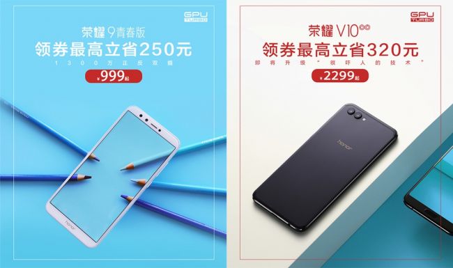 二、爆款机型优惠:荣耀9青春版最高立省250;荣耀V10最高立省320