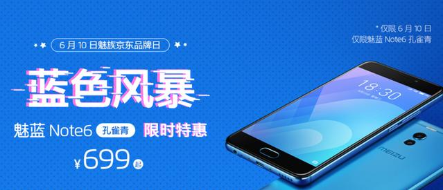 6月10魅族京东开启了品牌日,为即将到来的618造势,维持一天的魅族京东品牌日魅蓝Note6凭借超级钜惠的价格,一举拿下京东单品销量冠军宝座。在当天的活动中,魅蓝Note6孔雀青版(3+32G)限时特惠价699元,此价一经放出便遭受到魅友们的疯抢。
