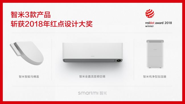 智米产品的另一大“经典”之处见诸设计。在2017年,智米全直流变频空调获得了Good Design Gold Award日本优良设计金奖,打破了60年来大陆无人获此殊荣的尴尬局面。而今年,这款产品再下一城,将红点奖收入麾下。与此同时,智米智能马桶盖和刚推出不久的智米纯净型加湿器也荣获红点奖。