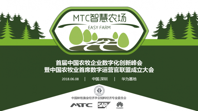 2018年6月8日至9日,由中国林牧渔业经济学会饲料经济专业委员会、麦汇信息MTC、SAP中国、华为联合举办的农牧数字化创新大会在深圳圆满举行 。数百位农牧企业的数字化领导者共聚一堂,联结互动、裂变创新、跨界思维,共同探索企业的数字化转型之路。